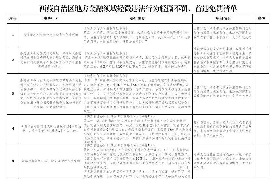 西藏自治区地方金融领域轻微违法行为轻微不罚、首违免罚清单