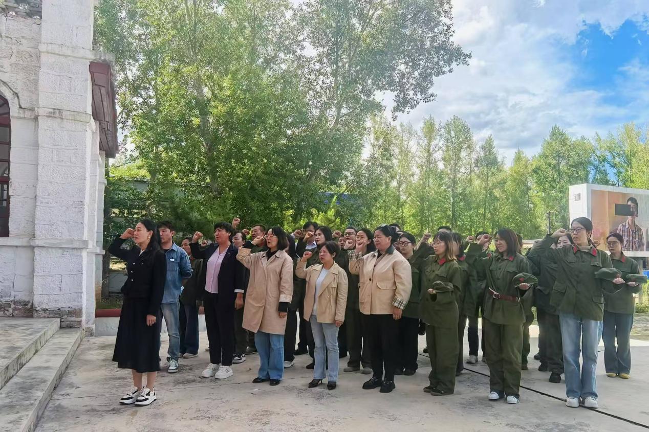 按照深入贯彻中央八项规定精神学习教育工作安排,2025年9月4日下午,拉萨市财政局第三党支部组织全局党员、预备党员和积极分子等34人,前往林周农场红色教育基地开展“党旗下的誓言”主题党日活动。通过参观知青文化广场、观看纪录片、重温入党誓词,传承知青精神,重温红色记忆。